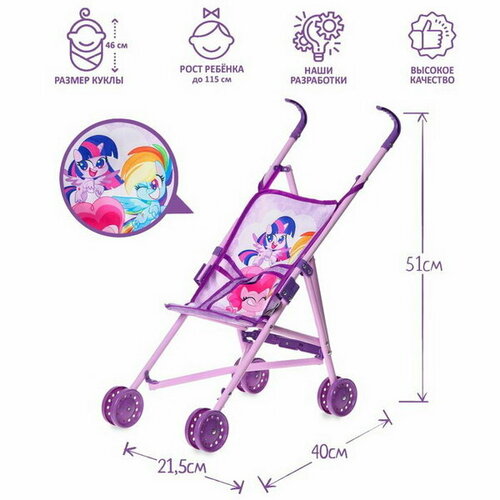 Цены на Коляска для кукол трость «Пони», My Little Pony красный, черный, белый, голубой, розовый, синий, желтый в г. Москва
