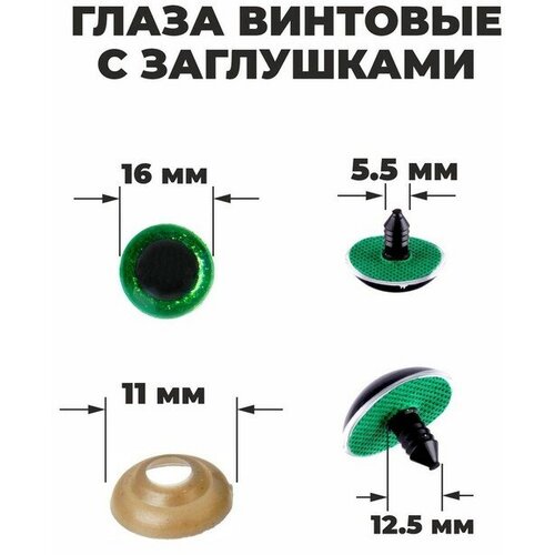 Глаза винтовые с заглушками, «Блёстки» набор 30 шт, размер 1 шт: 1,6 см, цвет зелёный