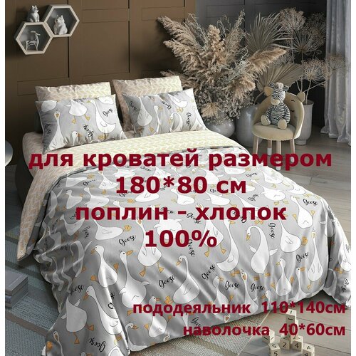 Комплект детского постельного белья от производителя Велли выполнен из бязи, это 100% хлопок. Подходит для кроватки стандартного размера 60 на 120см. В комплект входят пододеяльник 110 на 140см, простынь на резинке 60 на 120 на 15см, наволочка 40 на 60см. Бязь это ткань, которая состоит из 100% хлопкового волокна, легко стирается, не линяет, очень приятна телу, гладкая на ощупь, почти не мнется, экологична и комфортна. Этот материал очень устойчив к износу и частой стирке за счет особых красителей. Качественный натуральный материал отлично пропускает воздух и не вызывает раздражения кожи, обеспечивая комфортный сон Вашему малышу. Стирать изделия из бязи можно много раз на бережном режиме и при t не более 30 градусов. Отжим 800 оборотов. На постельном белье из бязи сон Вашего чада будет крепким и сладким. С любовью к Вашим детям, производственная фирма Велли.