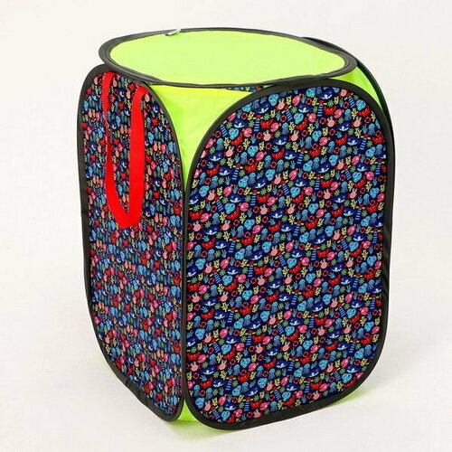 Контейнер для игрушек высокий, familia, принт "Морские обитатели"+ лимон