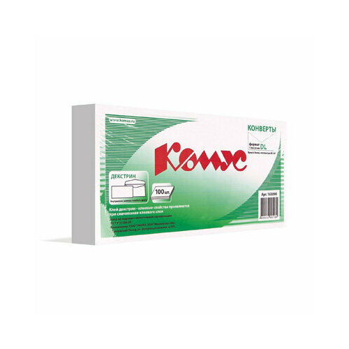 Конверт E65 декстрин 110х220 80г комус 100шт/уп 12уп/кор, 163090