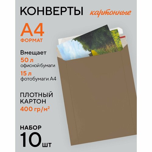 Конверт картонный с мелованным лицевым слоем А4 с клеевым клапаном 10шт