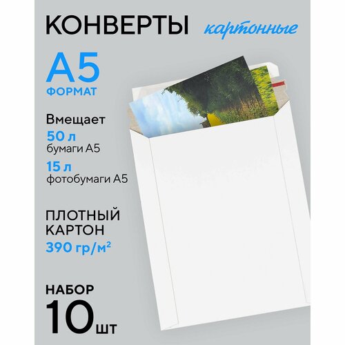 Конверт картонный с мелованным лицевым слоем А5 с клеевым клапаном 10шт