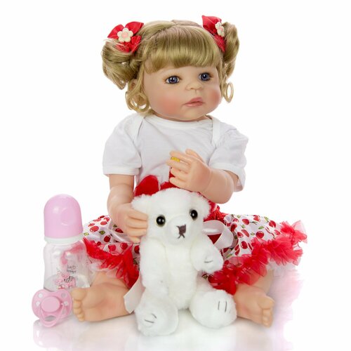 Кукла реборн силиконовая NPK Doll. Кукла - младенец Reborn 55 см. в белом боди и нарядной юбке.