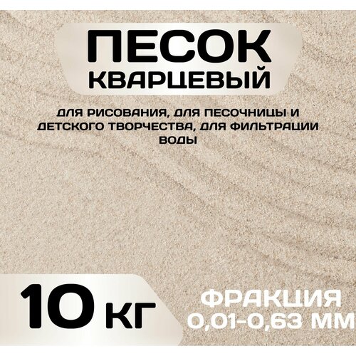 Кварцевый песок фракция 0,01-0,63 мм, 10 кг. натуральный, для рисования, для песочницы и детского творчества, для фильтрации воды