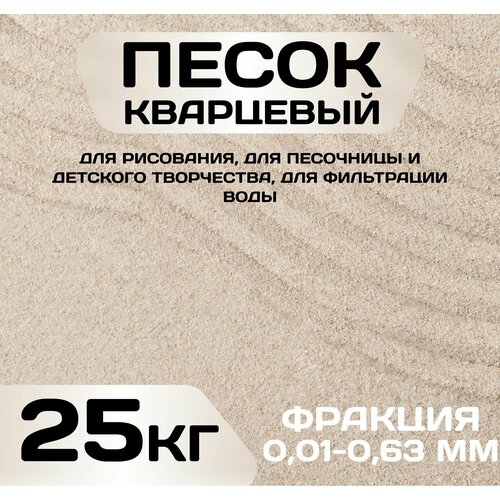 Кварцевый песок фр 0,01-0,63 мм, 25кг. натуральный для пескоструя, для песочницы и детского творчества, рисования, для фильтрации воды