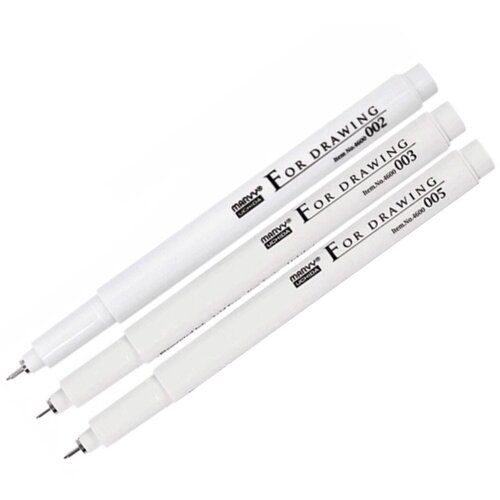 Линер Marvy "FOR DRAWING", экстра тонкий, черный набор из 3-х штук. (0.02(NEW),0.03,0.05.)