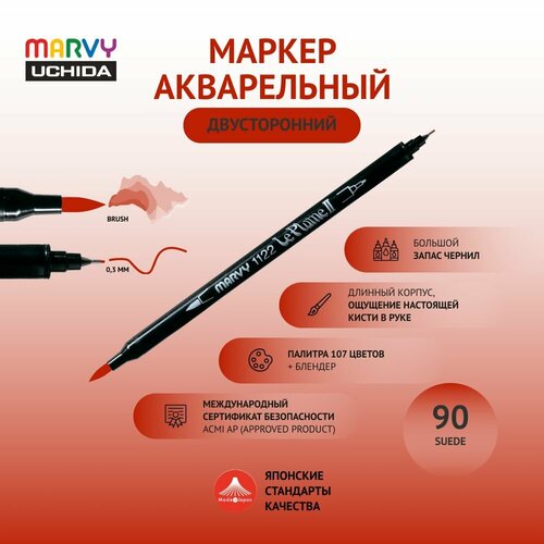 Маркер Marvy Uchida для скетчинга акварельный двусторонний (кисть/капиллярная ручка 0.3мм) коричневая замша MAR1122/90