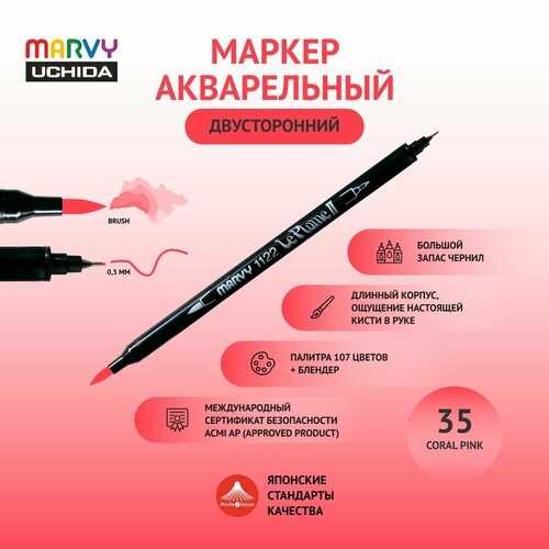 Маркер Marvy Uchida для скетчинга акварельный двусторонний (кисть/капиллярная ручка 0.3мм) кораллово-розовый MAR1122/35