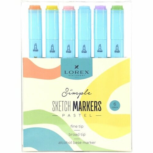 Набор маркеров Lorex для скетчинга SIMPLE PASTEL 2 6 мм ассорти скошенный пулев 6 шт