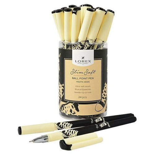 Ручка масляная LOREX YOUTH KEDS серия Slim Soft, круглый прорезиненный корпус, синие чернила, игловидный наконечник 0,5мм, 24 штуки