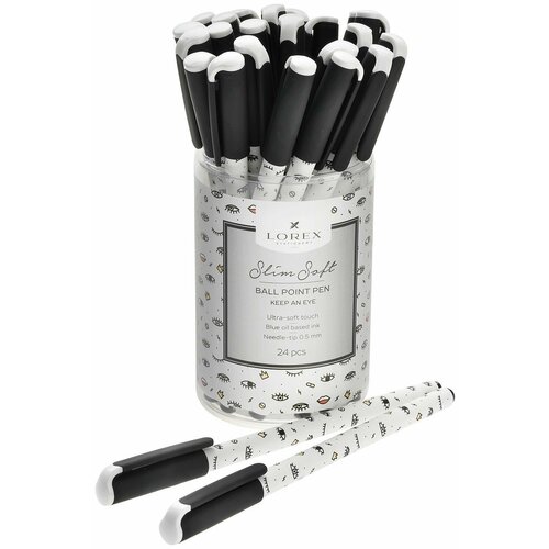Ручка шариковая LOREX KEEP AN EYE, серия "Slim Soft", чернила на масляной основе, круглый прорезиненный корпус, синие чернила, игловидный на