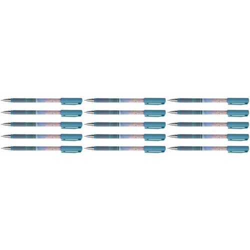 LOREX Ручка масляная Gradient Touch, серия Double Soft, круглый прорезиненный корпус, резиновый грип, синяя, 15 шт