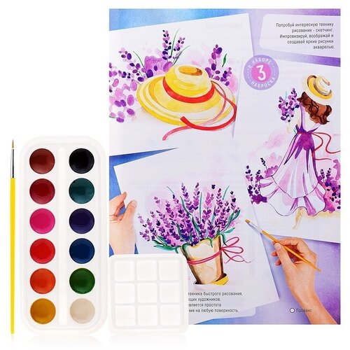 Скетчинг акварелью LORI "Прованс", 12 цветов, 3 наброска (Рн-032)