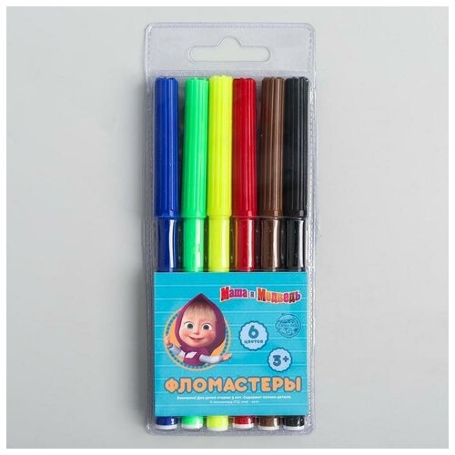 Фломастеры 6 цветов, в пенале, вентилируемый колпачок, длина линии письма более 400 м, европодвес