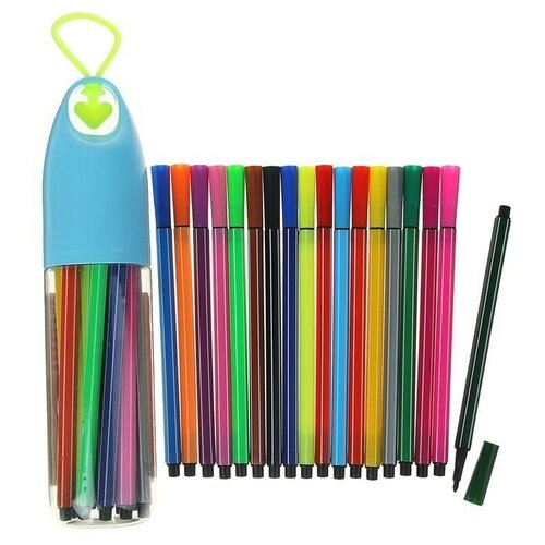 Фломастеры, 18 цветов, в пластиковом тубусе с ручкой, вентилируемый колпачок