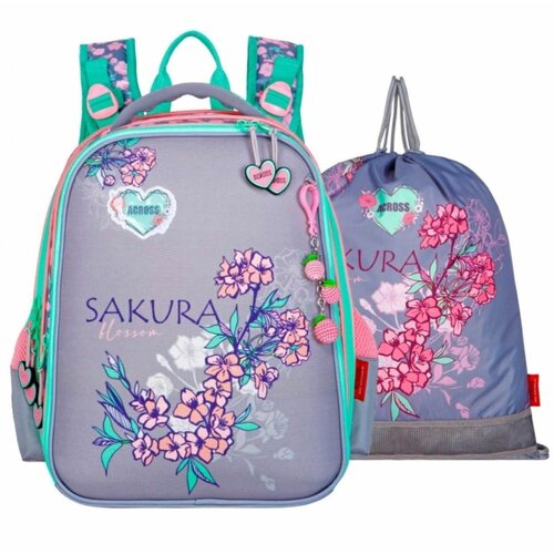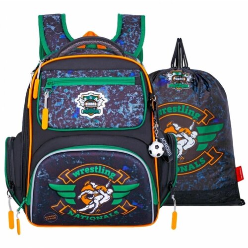 Ранец школьный Стандарт, раскаладной, 35 х 22 х 12 см, Across 191, наполнение мешок, чёрный, зеленый ACR22-191-3