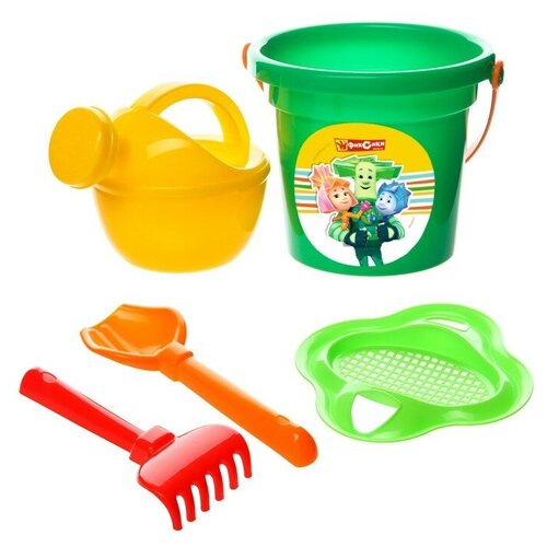 Набор для игры в песке: ведро-крепость малое, ситечко, совок, лейка, фиксики цвет микс