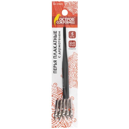 Перья плакатные остров сокровищ, набор 5 шт., с держателем, блистер, 210672