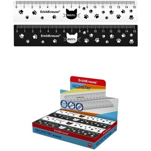 ErichKrause Линейка 15 см ErichKrause Meow, пластиковая, в коробке-дисплее, микс