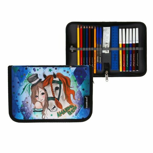 Пенал 1 секция, 135 х 205 мм, с наполнением 18 предметов, тканевый, Erich Krause, Magic Lunapark, 57559