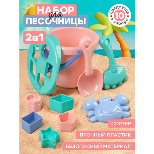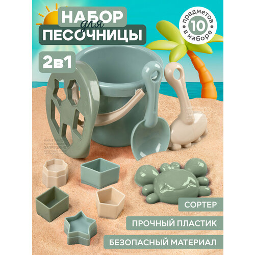 Песочный набор ТМ Джамбо Тойз, ведёрко с крышкой- сортер, лопатка, грабли, формочка, фигурки для сортера, JB5300549