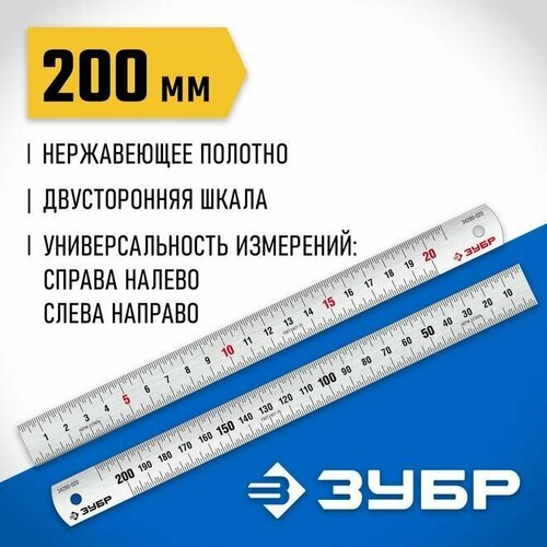Линейка усиленная нержавеющая Про-20, ЗУБР 0,2 м