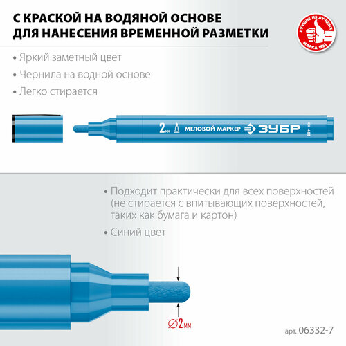 Маркер меловой ЗУБР ММ-400, 2 мм, круглый, профессионал (06332-7)