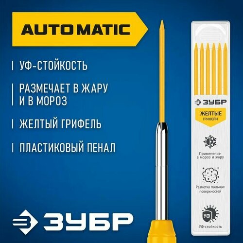 Сменные грифели для автоматического строительного карандаша ЗУБР 6шт, желтые 06313-5