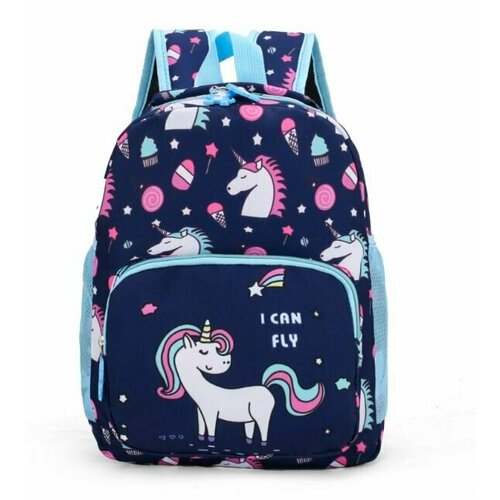 Рюкзак дошкольный DaV для девочек с единорогом, темно-синий, р-р 30х25х11 см