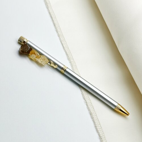 Ручка шариковая серебристая с натуральным янтарем (14см)