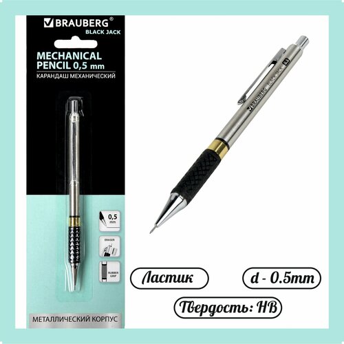 Карандаш механический 0,5 мм, "Black Jack", металлический корпус, ластик