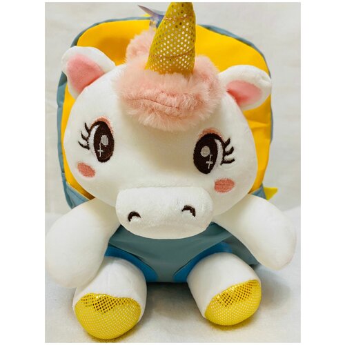 Плюшевый рюкзак единорожек / Рюкзак, 26х22х10 см, голубого цвета