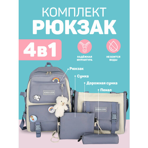 Рюкзак Korea Look набор для девочек школьный новый дизайн 4 предмета (Голубой)