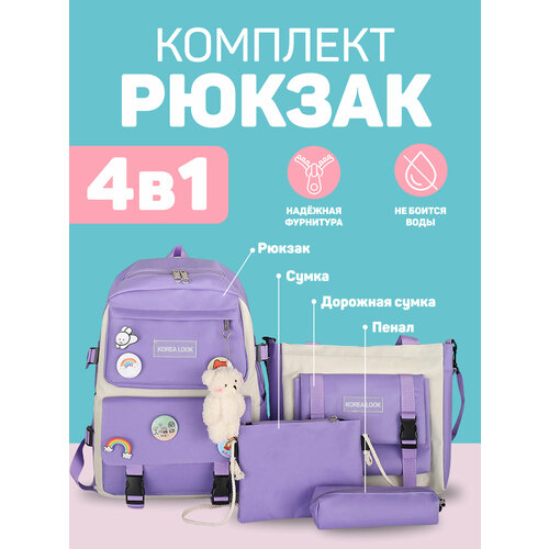 Рюкзак Korea Look набор для девочек школьный 4 предмета (Фиолетовый)