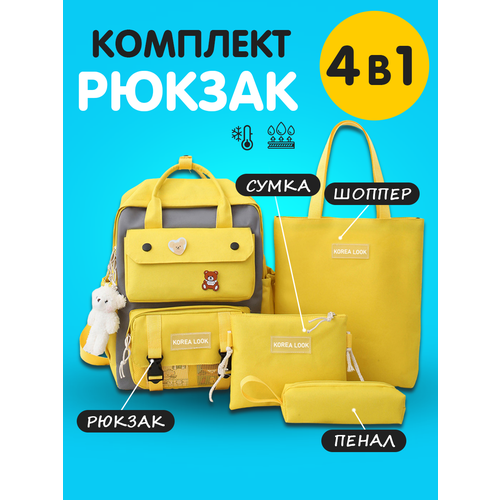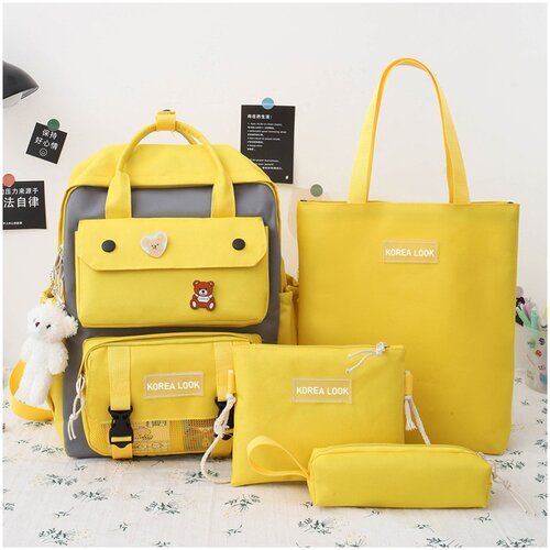 Рюкзак Korea Look набор для девочек школьный 4 предмета (Желтый)