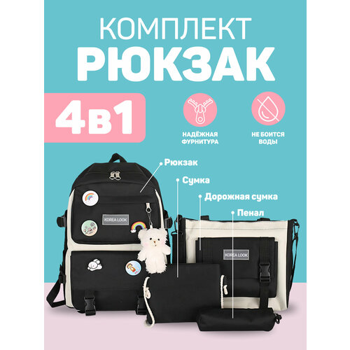 Рюкзак Korea Look набор для девочек школьный 4 предмета (Черный)