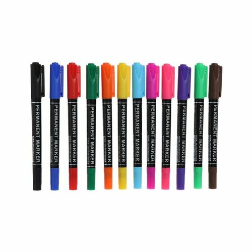 Moon Land Набор маркеров перманентных 12 цветов, двусторонних, 2,0 мм/0,7 мм, в блистере