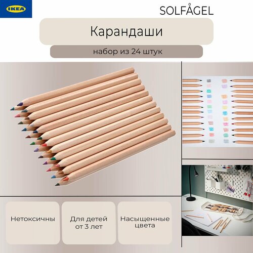 Цветные карандаши Солфагель Икеа, набор цветных карандашей Ikea Solfagel, разноцветные, 24 шт