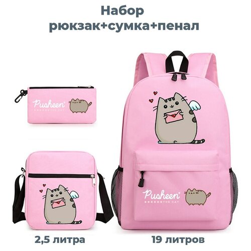Рюкзак сумка пенал 3 в 1 кот Пушин Pusheen (розовый)