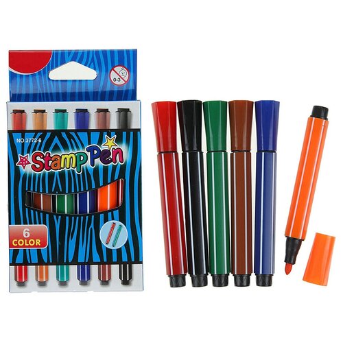 Набор фломастеров 6 цветов "Полоски" толстые, Migura, вентилируемый колпачок.