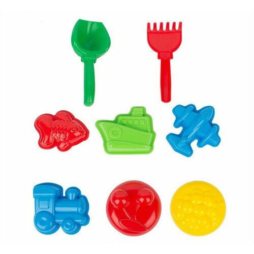 Песочный набор Спектр "Всякая всячина" 6 формочек, совок, грабли, в сетке (У377)