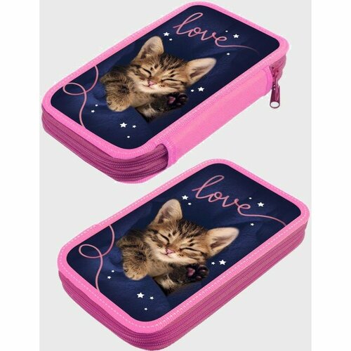 Пенал 2 секции, 125 х 205 х 40 мм, Calligrata 30П26/2 "Котенок", ламинированный картон