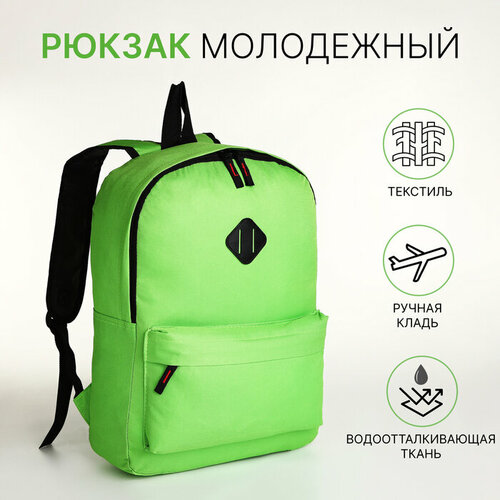 Рюкзак школьный на молнии, наружный карман, цвет зелёный