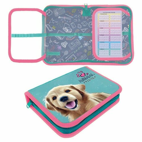 Пенал 1 секция, 140 х 200 х 40 мм, 2 откидные планки, тканевый, ПКТ 09-20-1 "Пушистый друг"