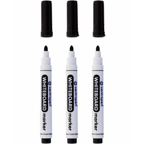 Маркеры на водной основе для магнитной белой доски стирающиеся Centropen черный, круглый, 2.5 мм - набор из 3-х штук