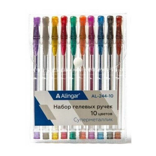 Набор гелевых ручек 10цв "Металлик" 1.0мм AL244-10 Alingar