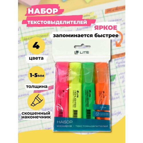 Набор маркеров-текстовыделителей LITE 1-4 мм 4 цвета, ассорти, скошенный FML01-4