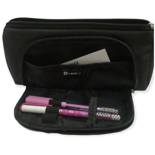 Пенал-косметичка Lamark на два отделения, на молнии, 220х100х85 мм, "Лен" черный