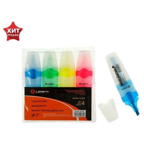 Набор маркеров текстовыделителей Lamark 4 цвета, 5,0 мм, PP